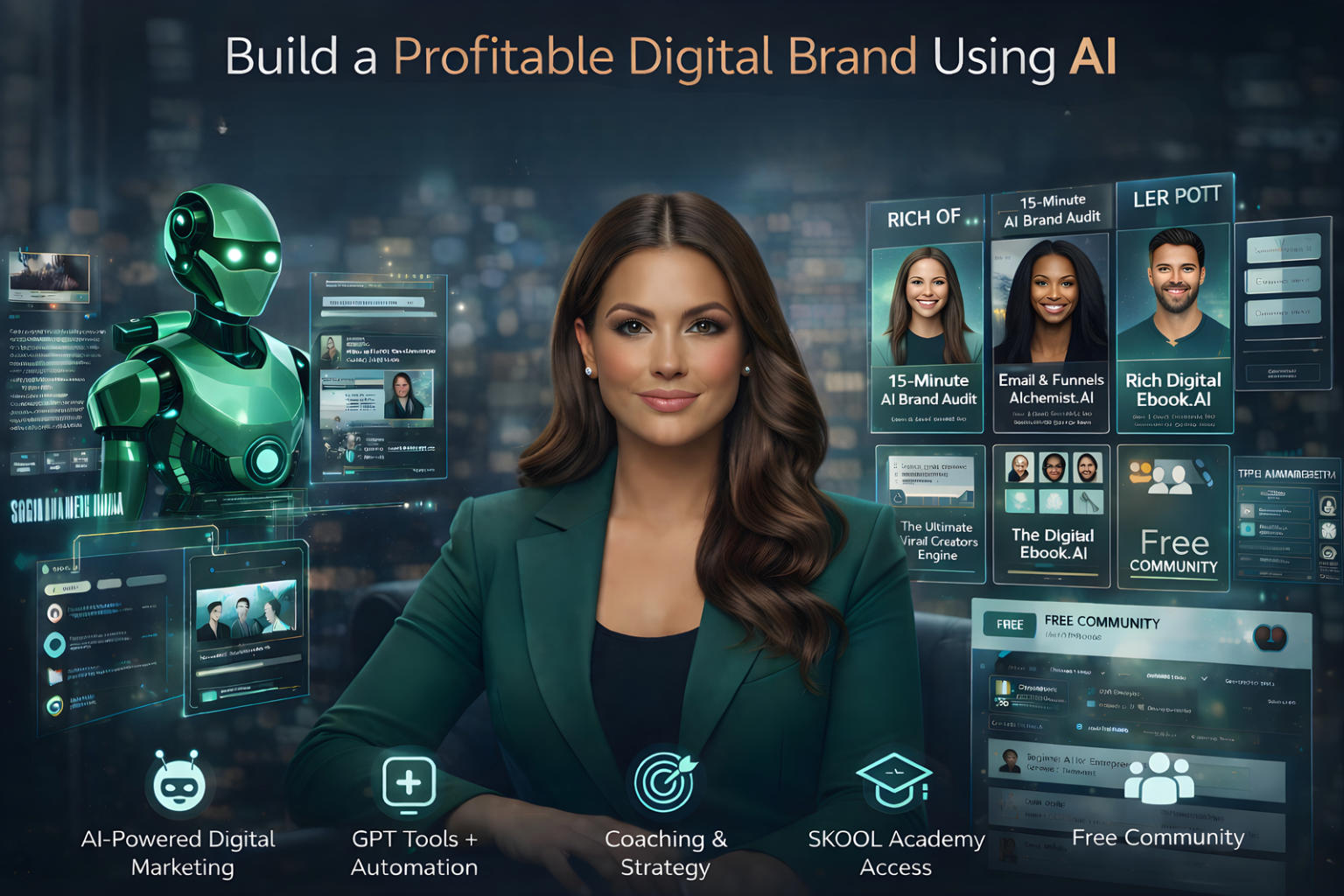 Rich Digital.AI gives you everything you need — AI tools, branding assets, business systems and brand strategy— all done-for-you or ready to use.